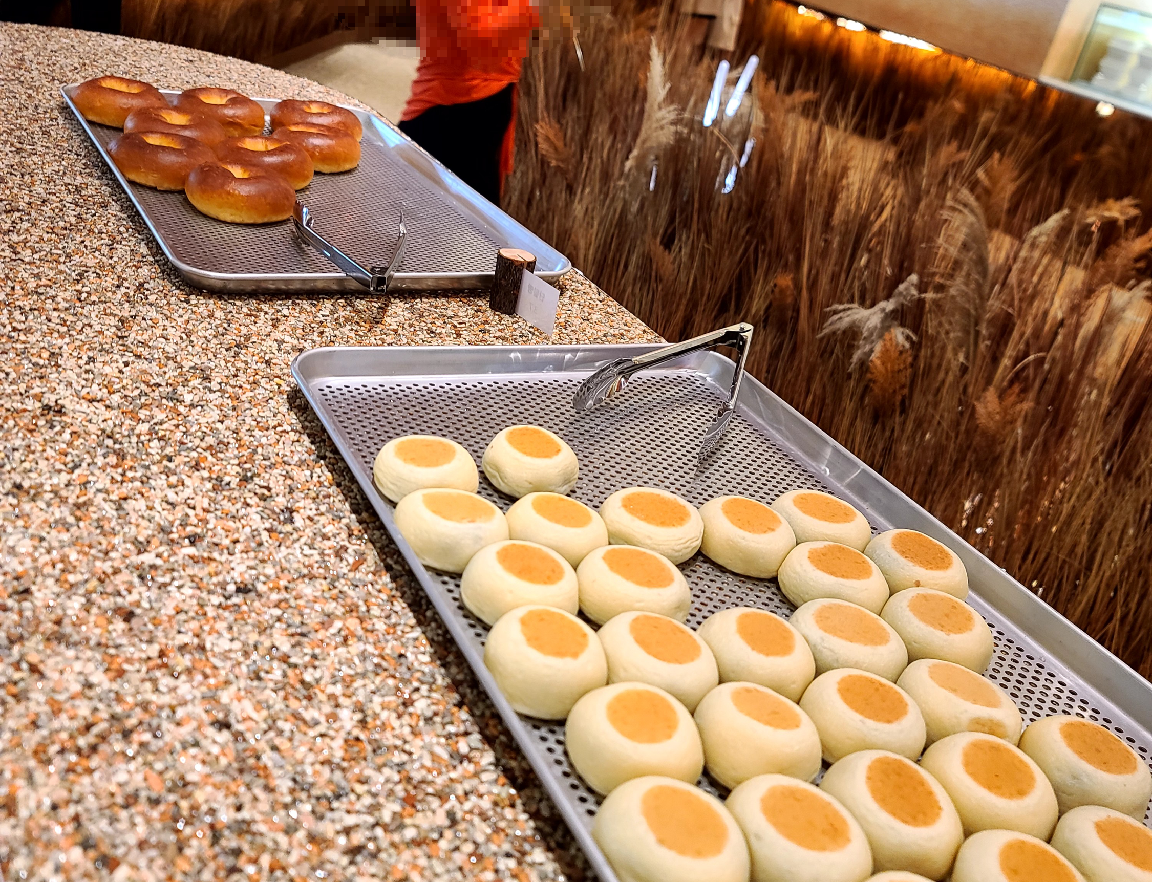 각종 빵류가 1층 매장 가운데에 진열되어 있고 자유롭게 가져가 결제하고 먹을 수 있게 되어 있다.