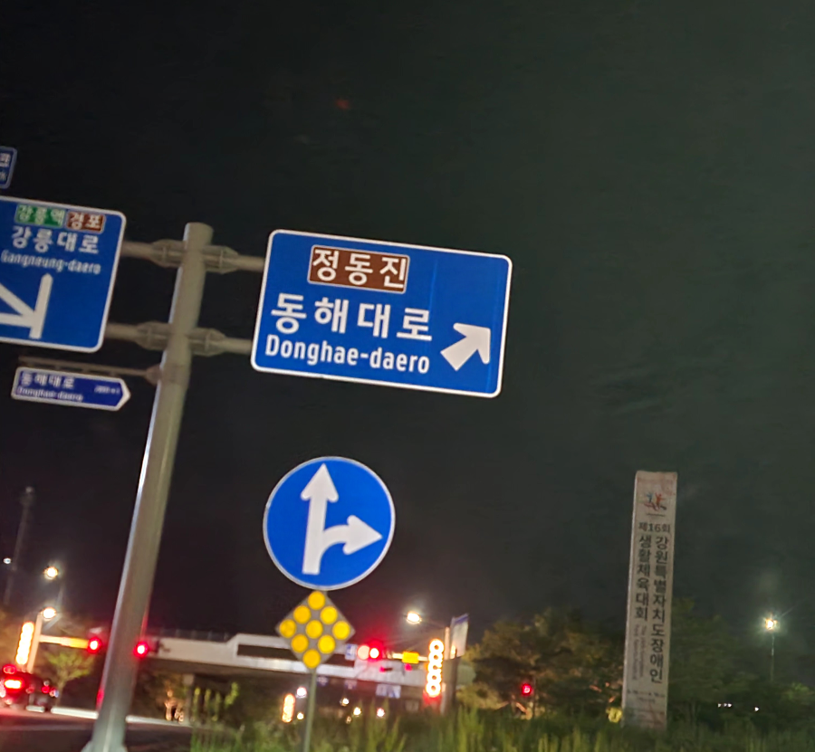 고속도로를 빠져나와 동해대로 방면으로 이동하는데