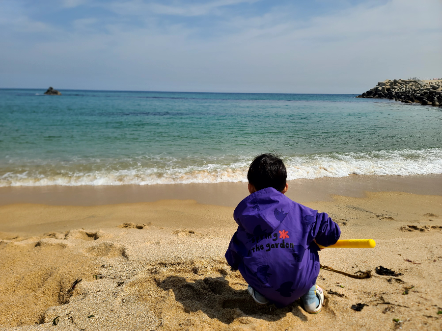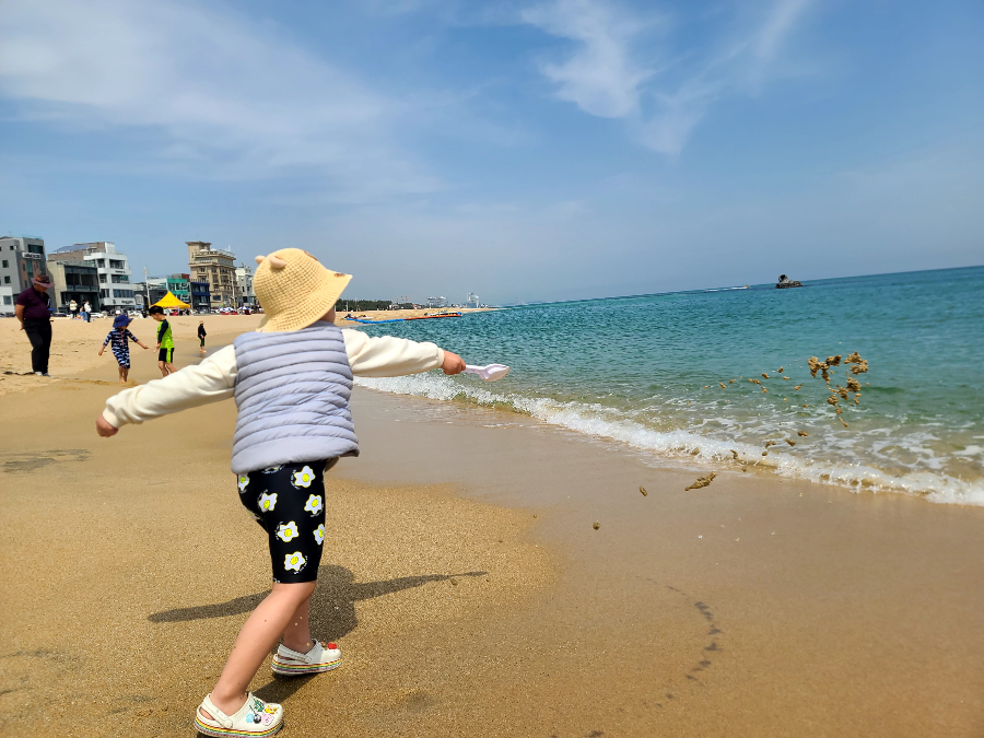 모래놀이장비 메인삽을 들고 바다로 달려가신 아드님ㅋㅋ