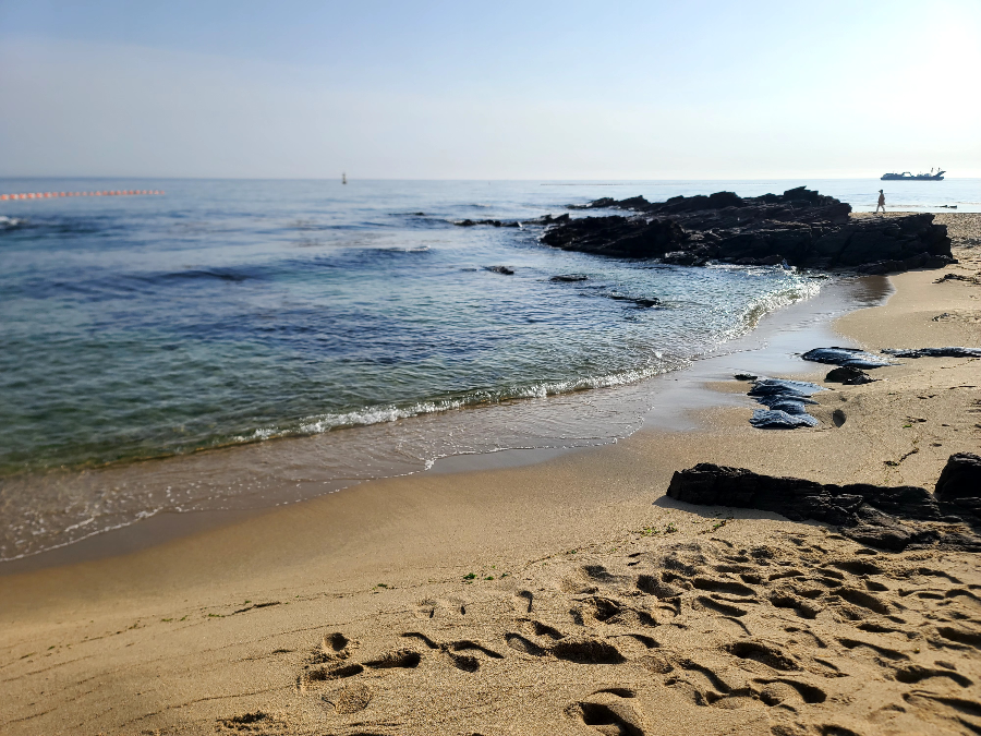 이따가 모래놀이를 할 해변 상태가 어떤지 아침부터 가봤다