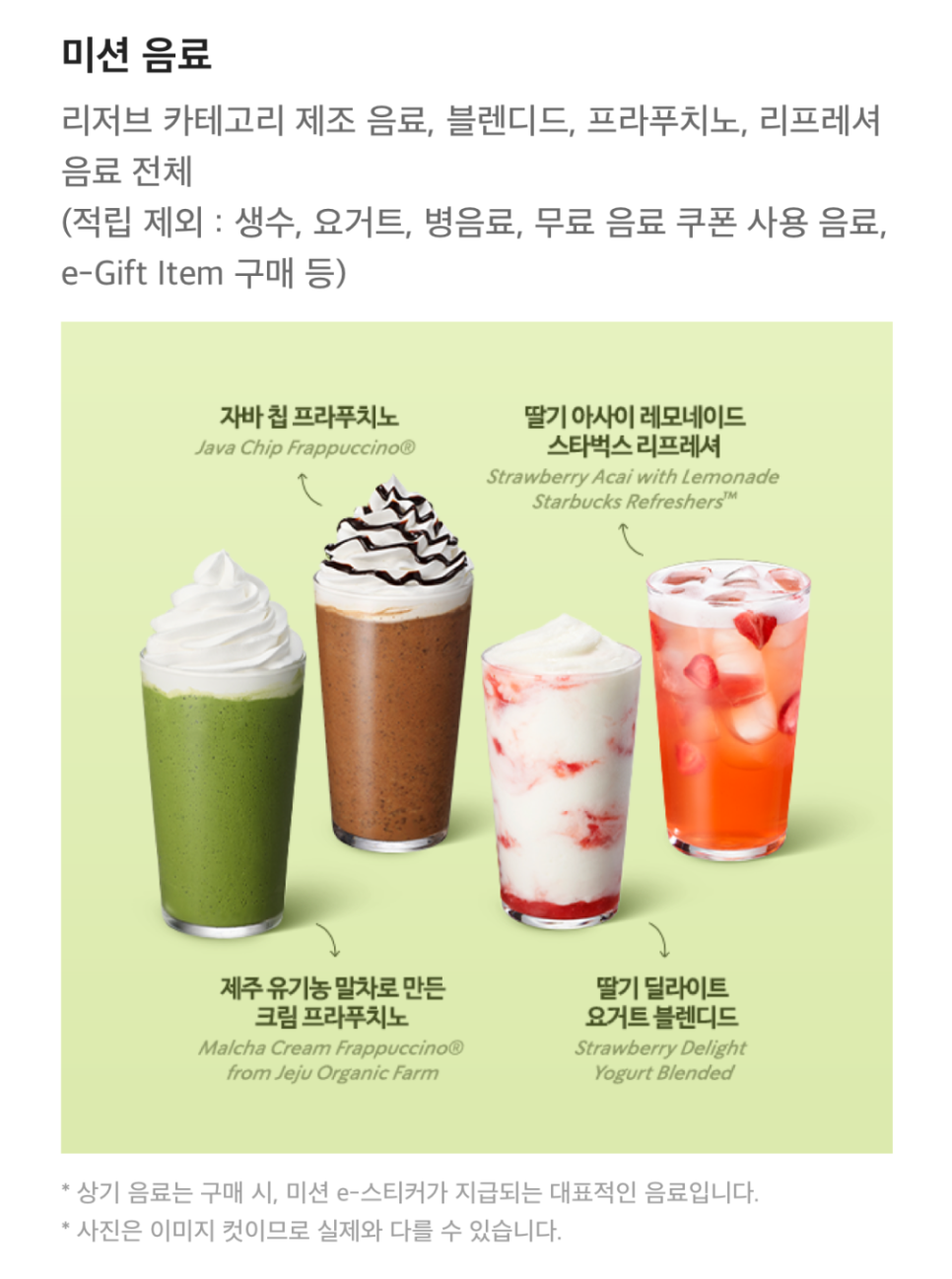 프라푸치노 2종과 딸기가 첨가된 음료 2종으로