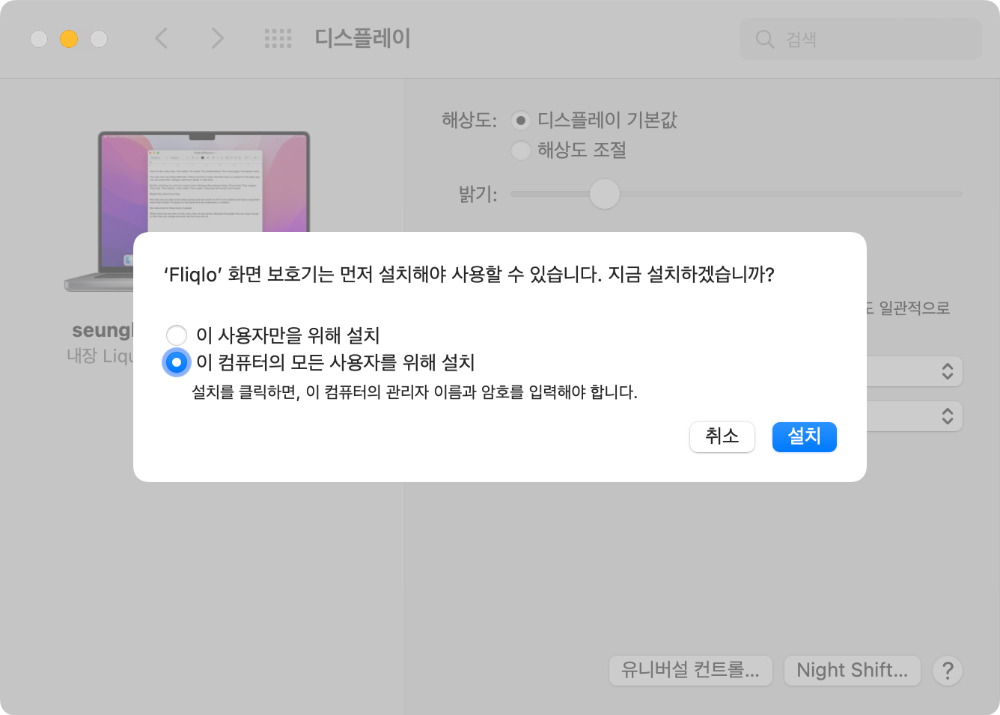 첫번째에 보이는 Fliqlo.saver 파일을 열어주자