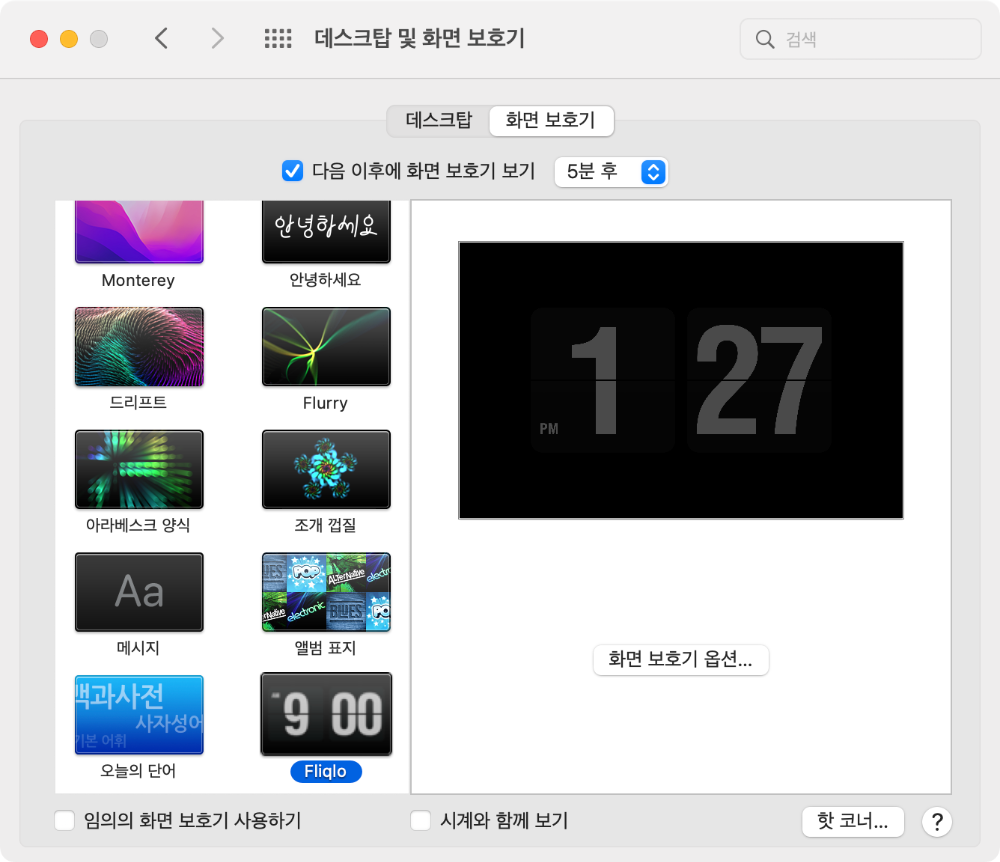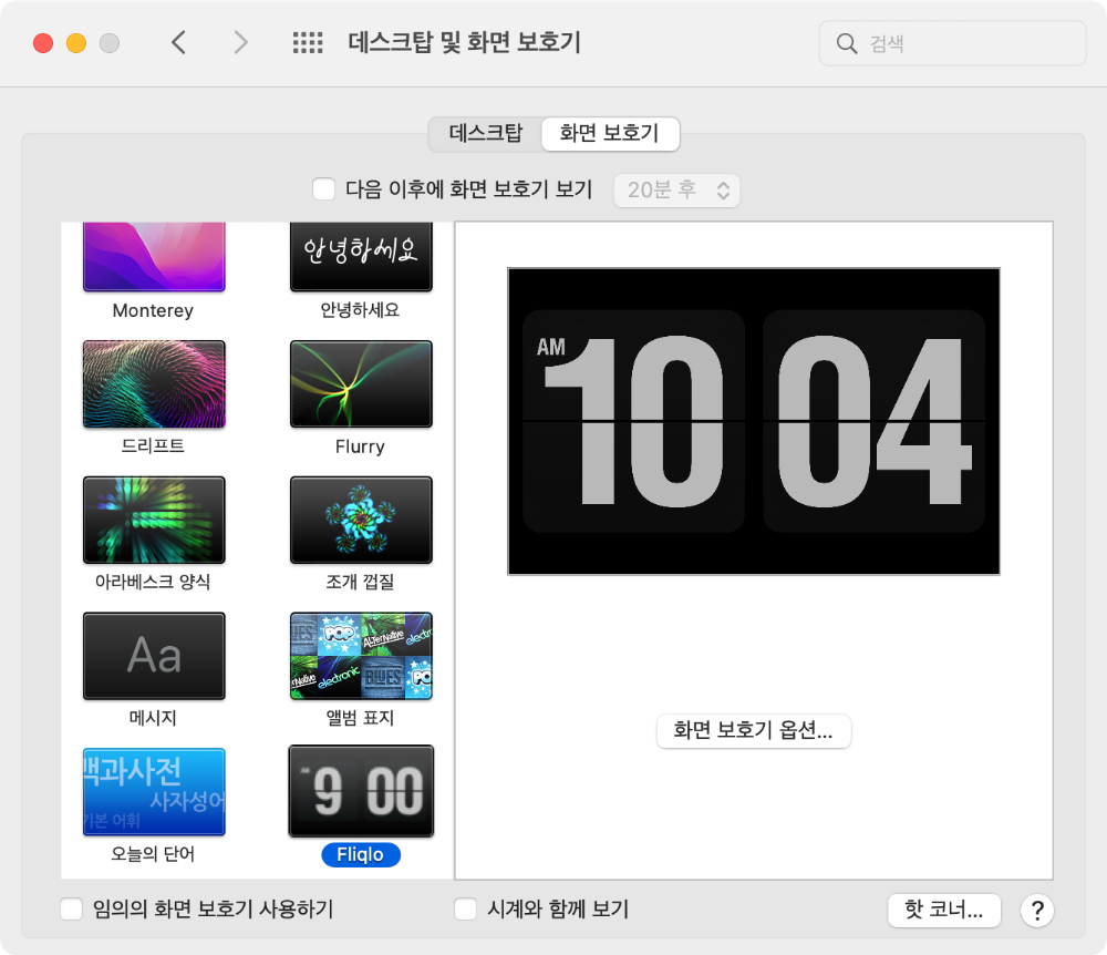 화면보호기명은 fliqlo로 구글에서 쉽게 검색이 가능하다