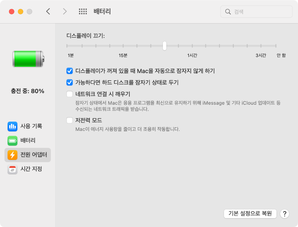 배터리 또는 전원 연결기 화면 꺼지는 시간이 짧은지를 먼저 확인해주자