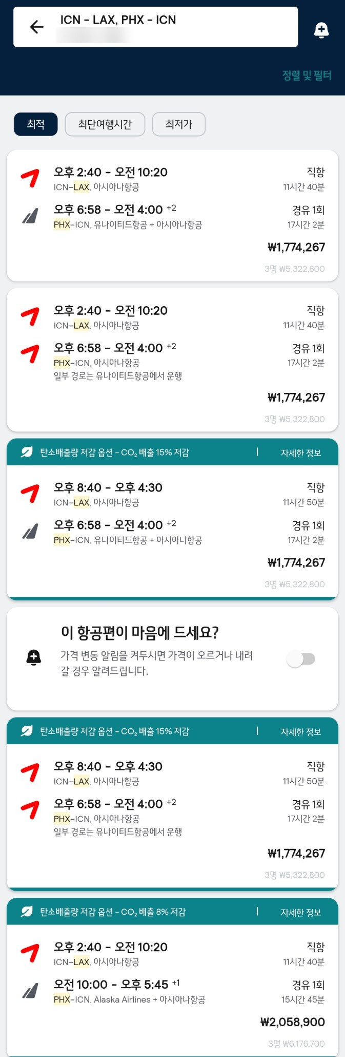 돌아오는편이 조금 다른 시간대로 보면 총액 기준 100만원정도 저렴해진다