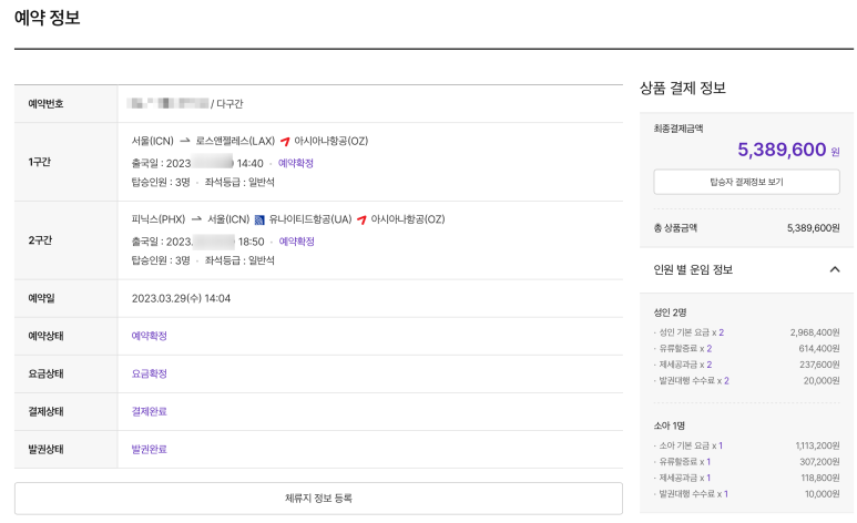 이미 구입한 항공권과 동일한 편명을 확인해보니