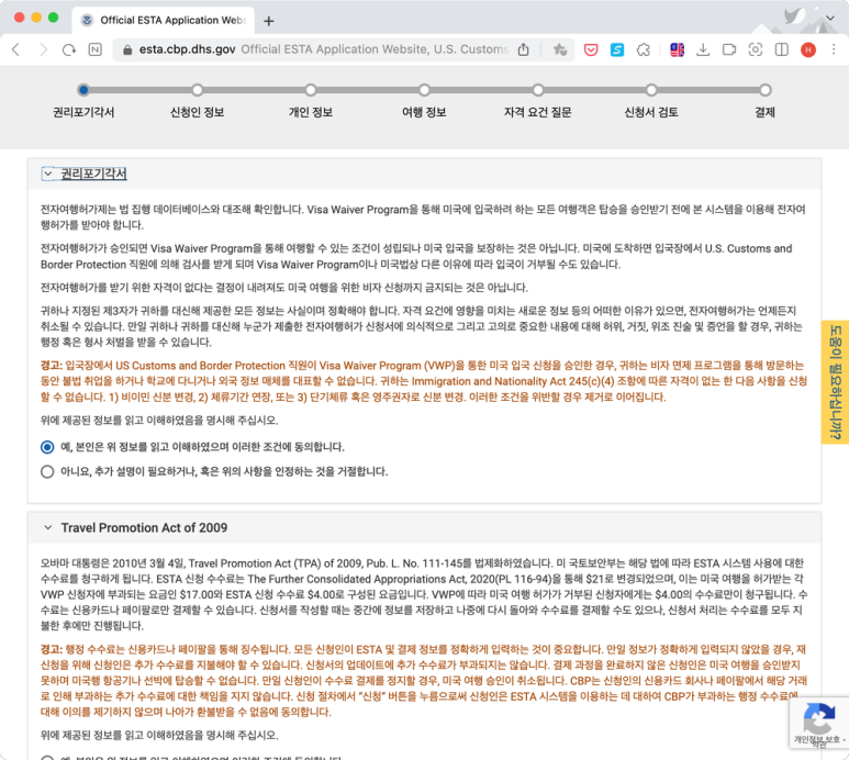 ESTA(이스타)라 불리는 전자여행허가제 신청을 해보자