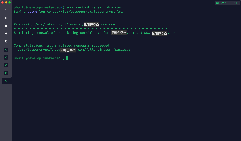 sudo certbot renew --dry-run