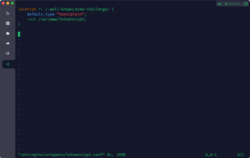 sudo vi /etc/nginx/snippets/letsencrypt.conf