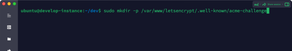 sudo mkdir -p /var/www/letsencrypt/.well-known/acme-challenge