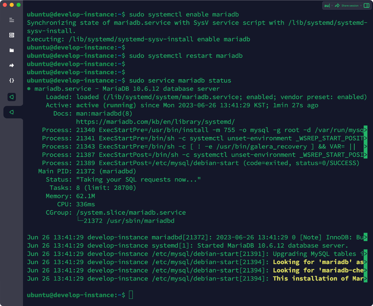리눅스 우분투 서버에 ssh로 접속해 MariaDB서버와 클라이언트를 설치하자