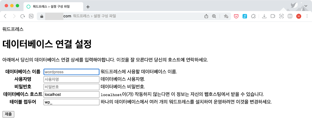 입력한 정보가 정확하다면 데이터베이스와 워드프레스가 연결된다