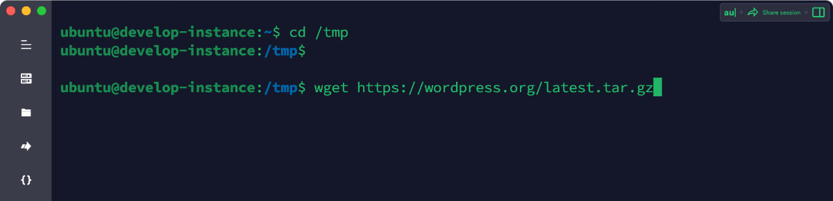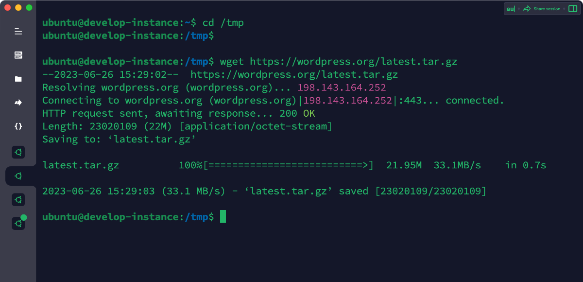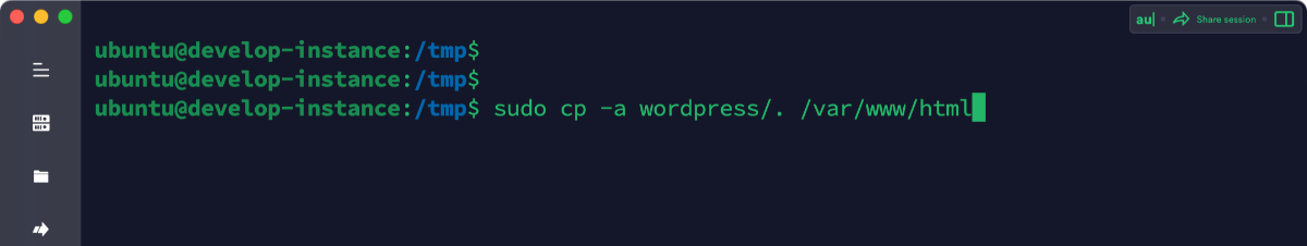 /tmp 디렉토리에 wordpress 디렉토리와 파일들이 확인된다
