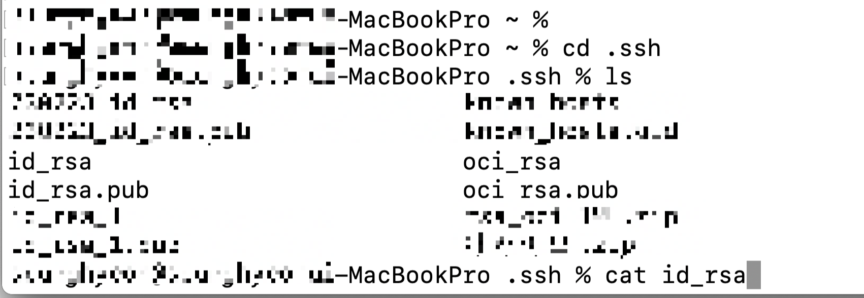 아래에서는 .ssh/oci_rsa로 생성을 해본 결과 화면이다