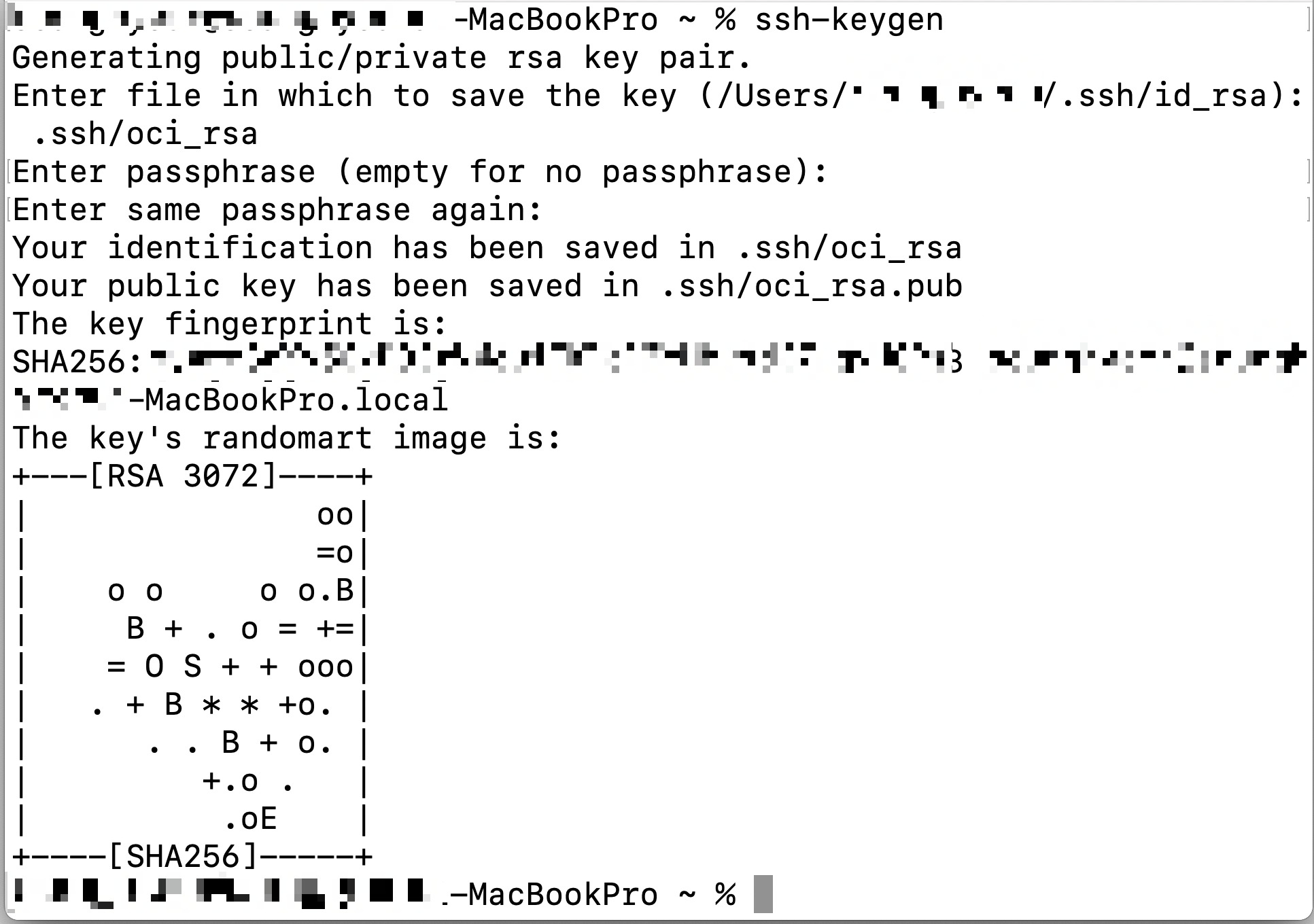 아래에서는 .ssh/oci_rsa로 생성을 해본 결과 화면이다