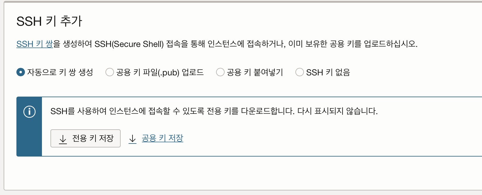 오라클에서 자동으로 키 쌍을 생성해서 제공해주고, 그 키를 우리가 보관하는 방법