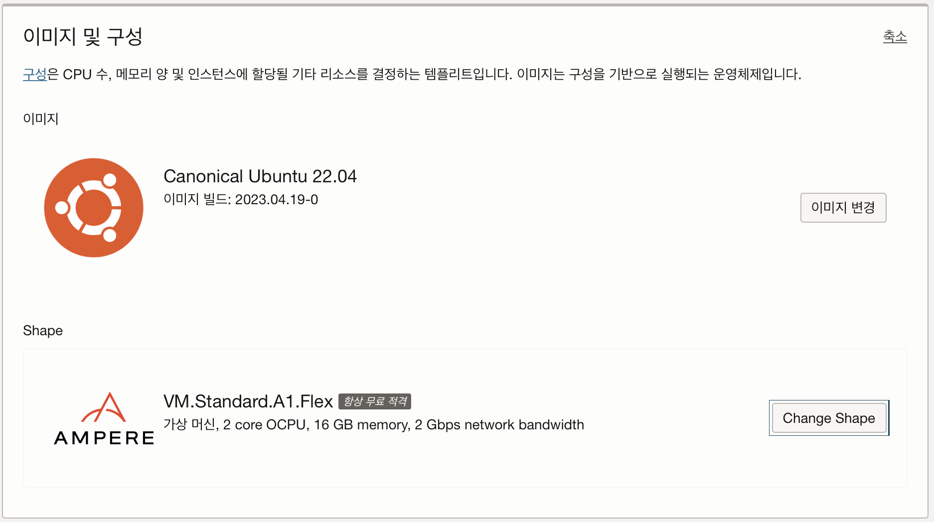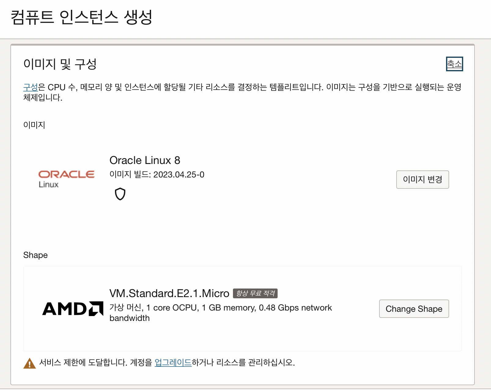 이미지는 초기 디폴트 값인 오라클 리눅스로 잡혀있다