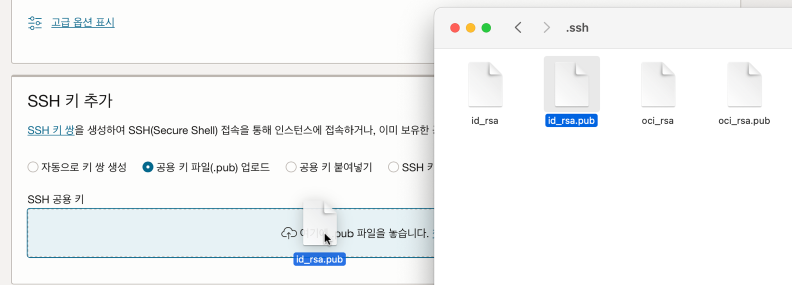 꼭, 공용키를 넣어야 합니다 파일명에 .pub 가 붙어있는...