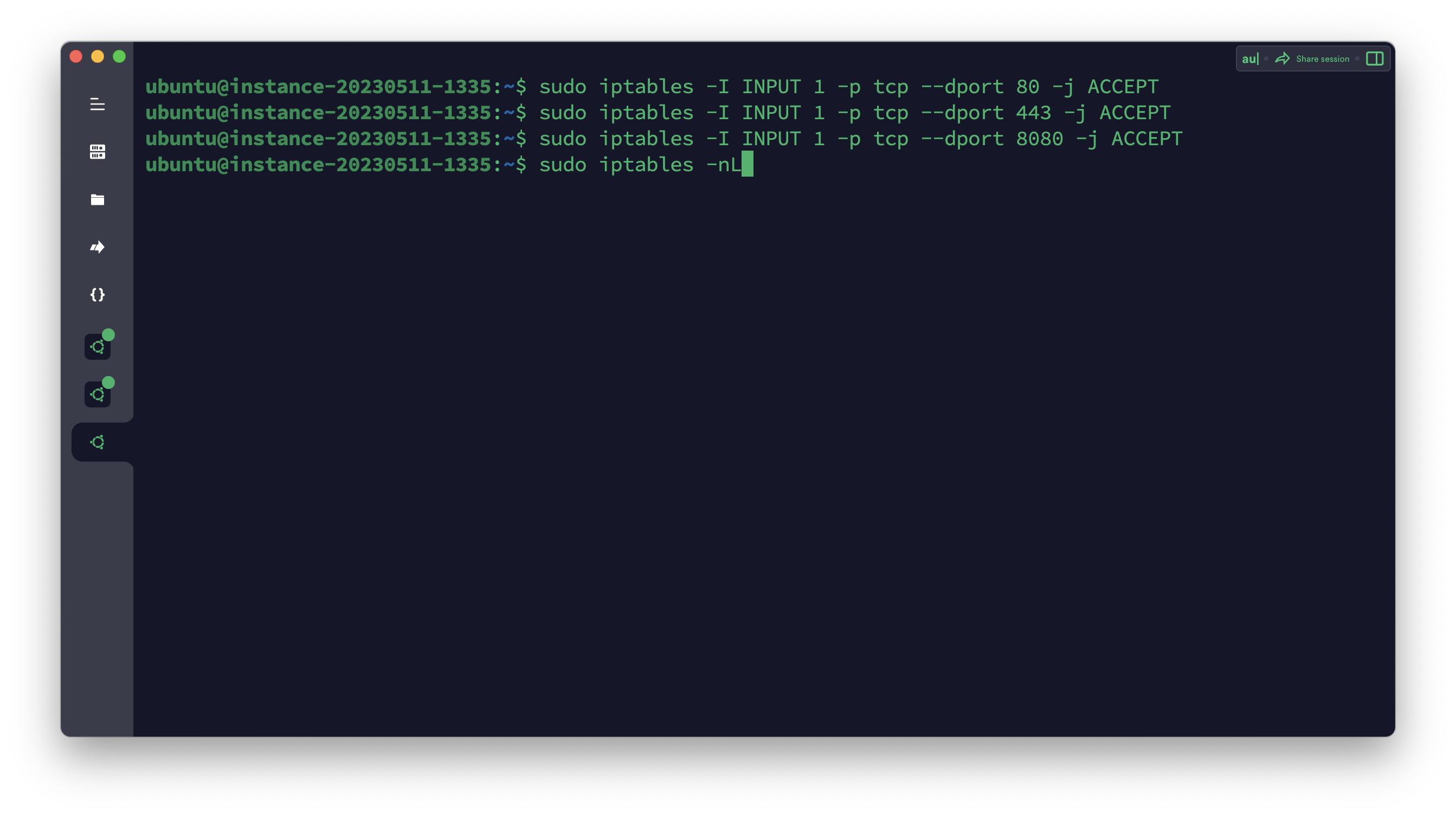 sudo iptables -I INPUT 1 -p tcp --dport 8080 -j ACCEPT