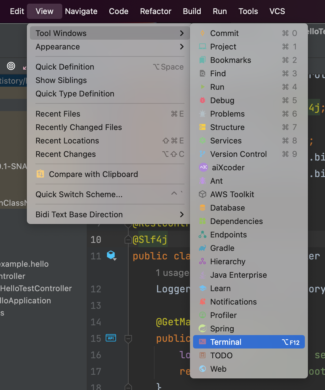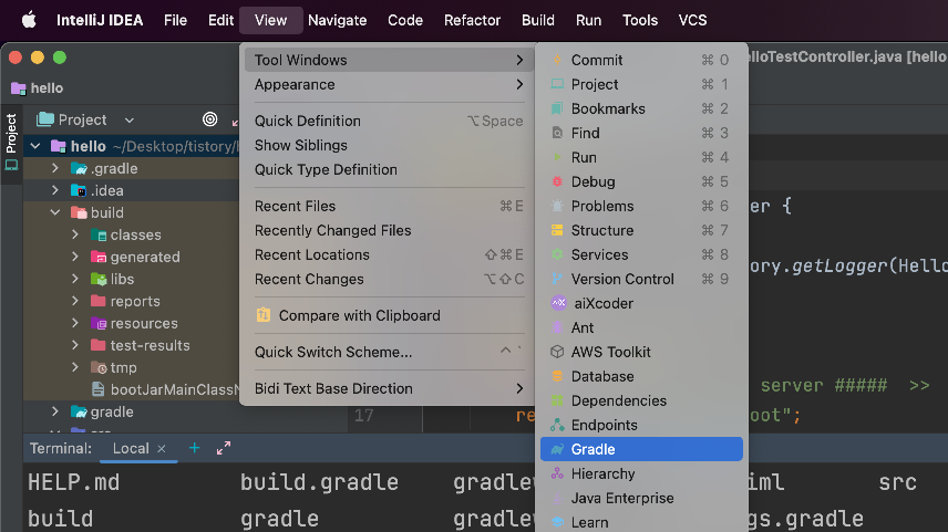 성단메뉴바에서 gradle 도구 활성화 했던것과 동일하게 터미널을 활성화 해주자