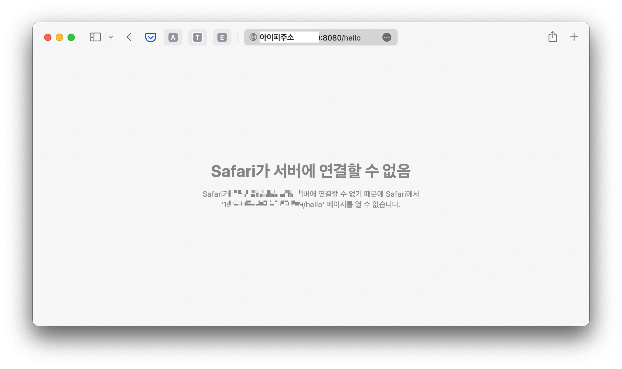 아이피주소:8080/hello로 접속해보니 로컬테스트때와 동일하게