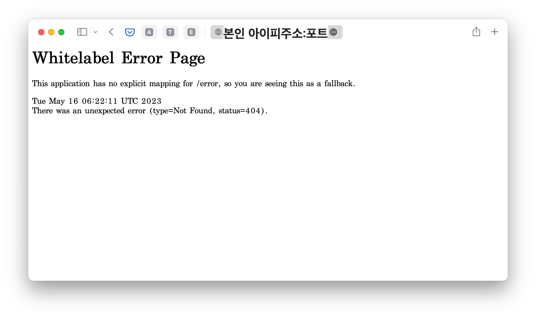 브라우저에서 아이피주소에 8080 포트로 접속해보니