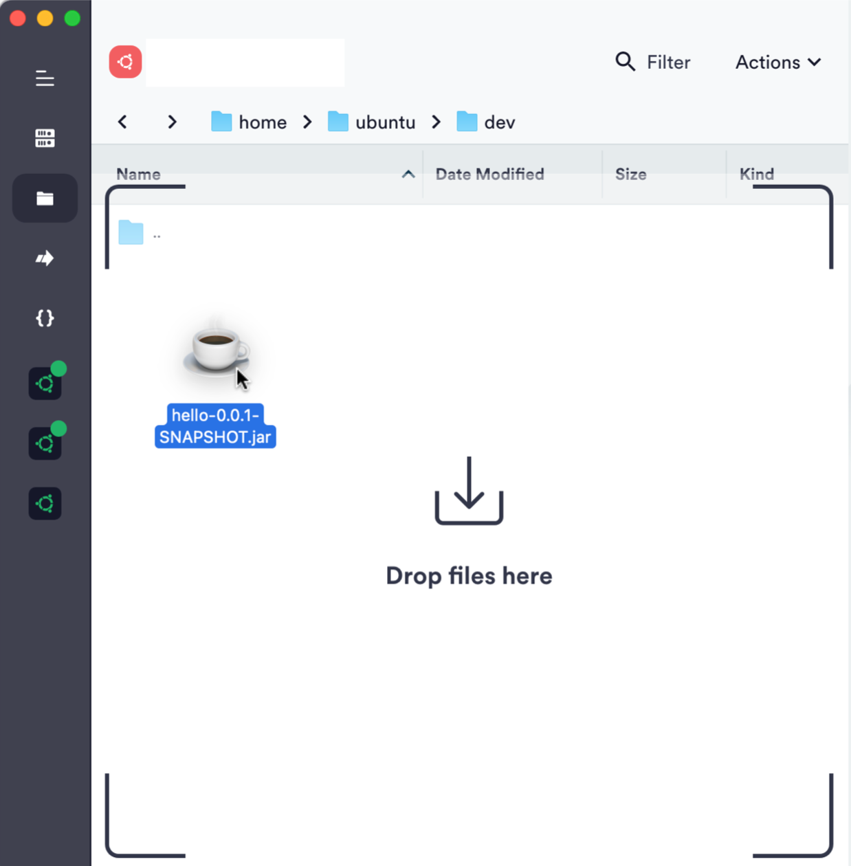 앞서 빌드했던 jar파일을 드래그앤드랍으로 편리하게 업로드 했다